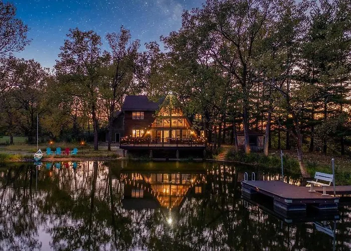 De 3-slaapkamer Secluded Waterfront A-Frame Cabin W/ Pvt Lake Fithian ligt op 7 km van Ludwig Farmstead Creamery en biedt toegang tot toeristische plekken in de omgeving.